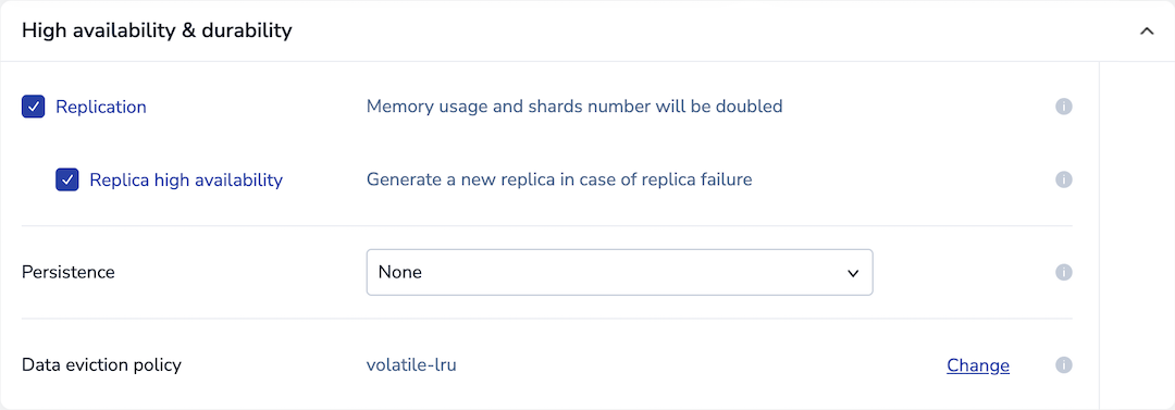 When you create a database using the Cluster Manager UI, replica high availability is enabled for the database by default if you enable replication.