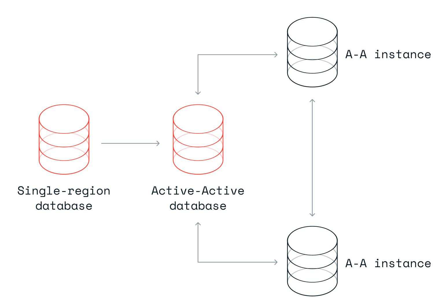 If you have data in a single-region Redis Enterprise Software database that you want to migrate to an Active-Active database, you'll need to create a new Active-Active database and migrate the data into the new database as a Replica Of the existing database. This process will gradually populate the data in the Active-Active database.