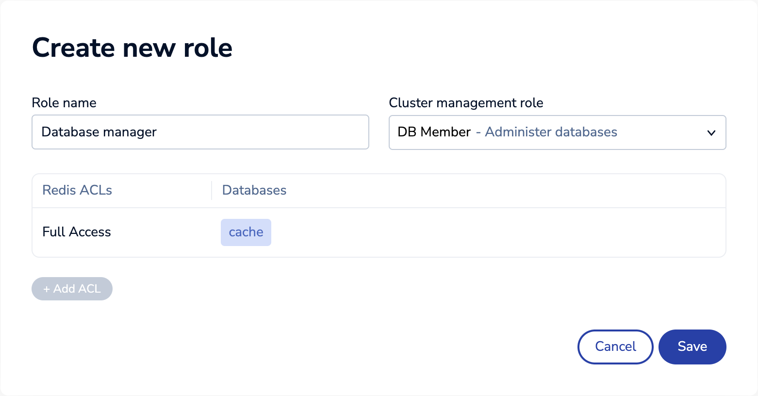 Enter a descriptive name for the Redis ACL. This will be used to associate the ACL rule with the role.