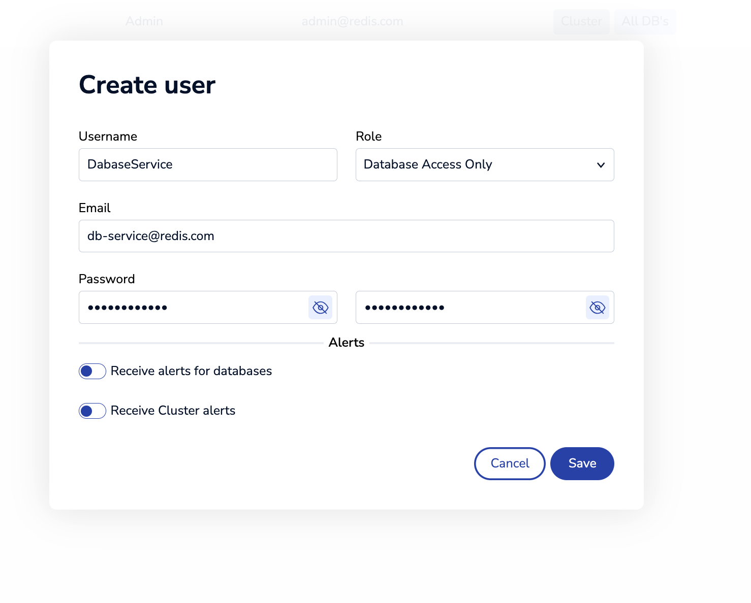 Receive cluster alerts - The alerts that are enabled for the cluster in Cluster > Alerts Settings are sent to the user.