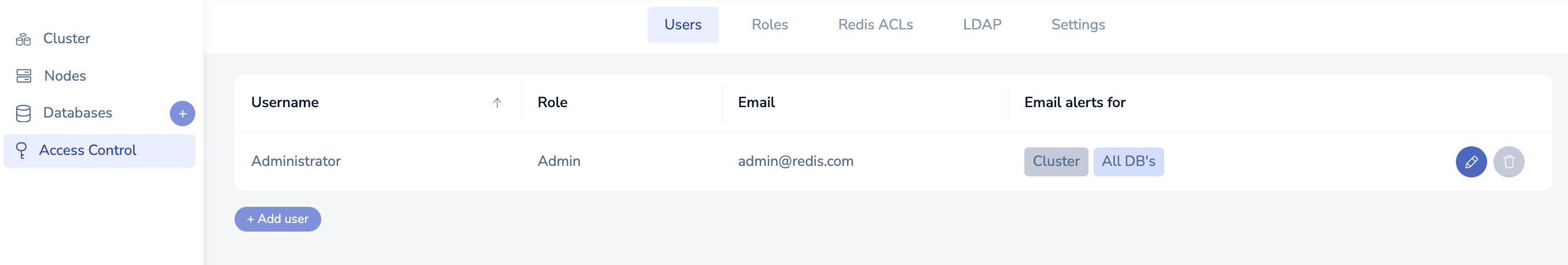 From the Access Control > Users tab in the Cluster Manager UI, you can: