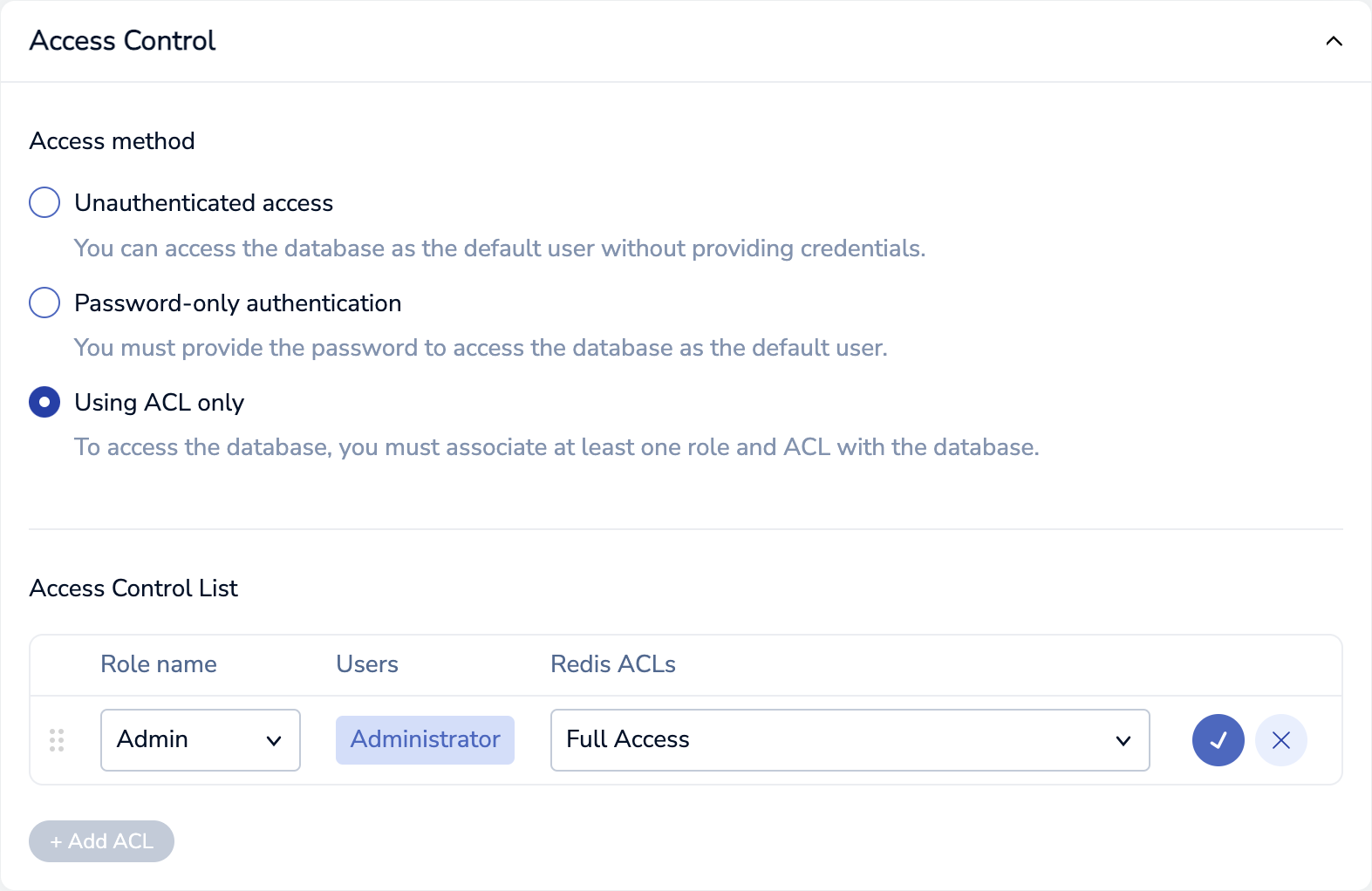If you assign multiple roles to an ACL and a user is authorized by more than one of these roles, their access is determined by the first “matching” rule in the list.