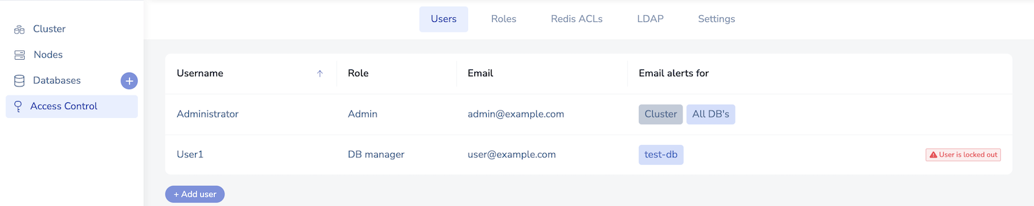 Go to Access Control > Users. Locked users have a "User is locked out" label: