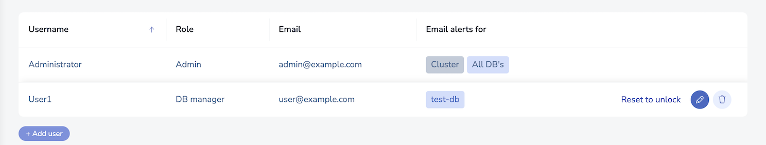 To unlock a user account or reset a user password with the REST API, use PUT /v1/users: